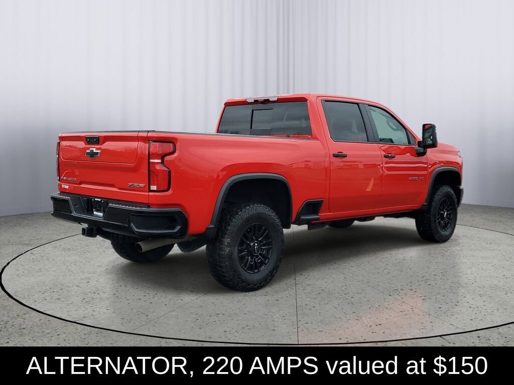 LOCAL TRADE!, Silverado 2500HD ZR2, 4D Crew Cab, 6.6L V8, 10-Speed Automatic, 4WD, 120-Volt Bed Mounted Power Outlet, 120-Volt Interior Power Outlet, 15 Diagonal Multicolor Head-Up Display, 170 Amp Alternator, 3.73 Rear Axle Ratio, All-Weather Floor Liners, Bed View Camera with Two Trailer Camera Provisions, Black Chevytec Spray-on Bedliner, Bluetooth® For Phone, BOSE Premium 7-Speaker Sound System, Chevrolet Connected Access Capable, Color-Keyed Carpeting Floor Covering, Compass, Deep-Tinted Glass, Durabed Pickup Bed, Electric Rear-Window Defogger, EZ Lift Power Lock and Release Tailgate, Front Bucket Seats, Front LED Fog Lamps, Front Rain-Sensing Wipers, Heated 2nd Row Outboard Seats, Heated Steering Wheel, High Gloss Black Mirror Caps, Hitch Guidance with Hitch View, in-Vehicle Trailering App System, Keyless Open and Start, LED Cargo Area Lighting, LED Smoked Amber Roof Marker Lamps, Manual Tilt and Telescoping Steering Column, Multi-Flex Tailgate, OnStar Services Capable, Perforated Leather Seat Trim, Power Door Locks, Power Front Windows with Driver Express Up/Down, Power Front Windows with Passenger Express Up/Down, Power Rear Windows with Express Down, Power Sliding Rear Window with Defogger, Preferred Equipment Group 3LT, Push Button Start, Rear Camera Mirror, Rear Cross Traffic Alert, Rear Wheelhouse Liners, Remote Vehicle Starter System, SiriusXM with 360L Trial Subscription, Steering Wheel Audio Controls, Technology Package, Trailer Camera Provisions, Ultrasonic Front and Rear Park Assist, Unauthorized Entry Theft-Deterrent System, Universal Home Remote, Up-Level Rear Seat with Storage Package, Wi-Fi Hotspot Capable, Wireless Charging, Wireless Phone Projection, Wrapped Steering Wheel, ZR2 Suspension Package.