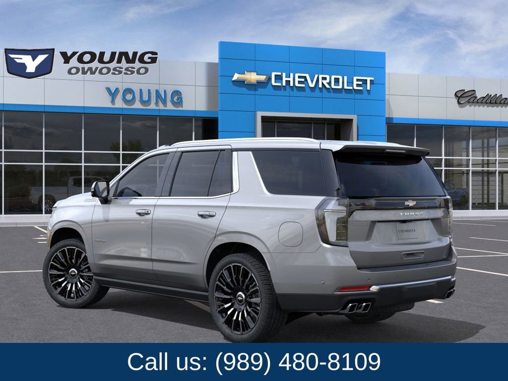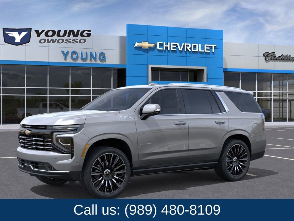 Sterling Gray Metallic 2025 Chevrolet Tahoe High Country 4WD 10-Speed Automatic with Overdrive EcoTec3 6.2L V8 4WD, Jet Black/Mocha Leather.
