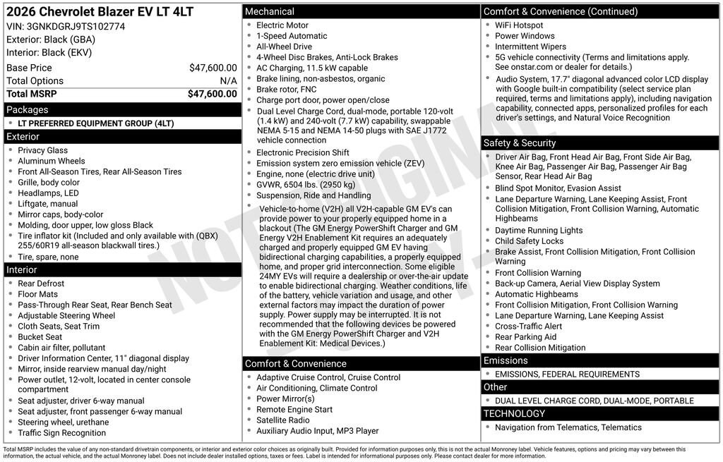 Black 2026 Chevrolet Blazer EV LT AWD 1-Speed Automatic Electric Motor