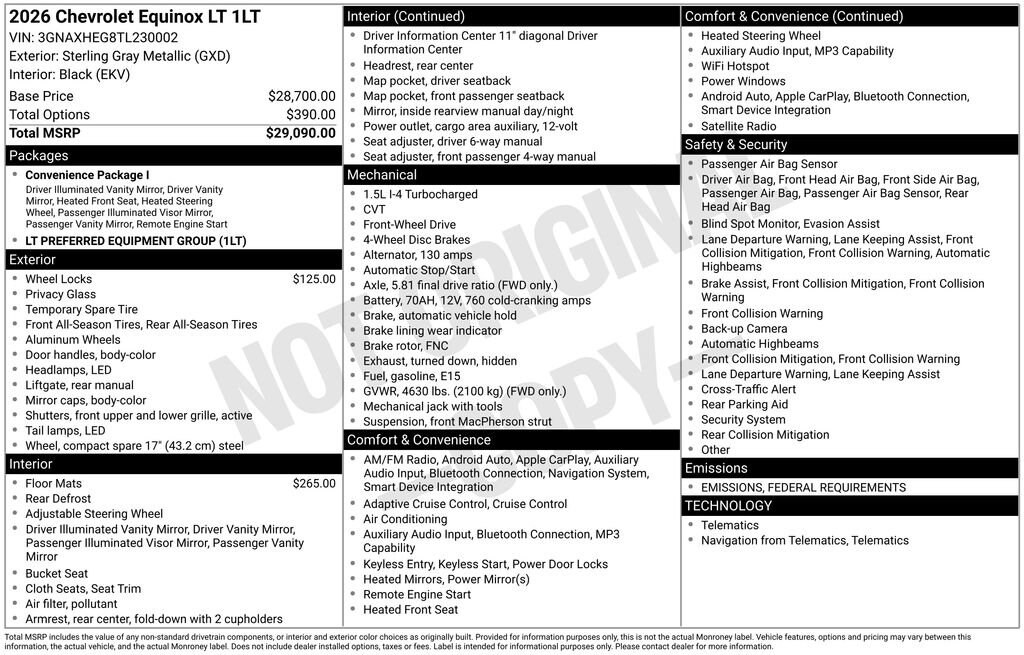 Sterling Gray Metallic 2026 Chevrolet Equinox LT FWD CVT 1.5L DOHC