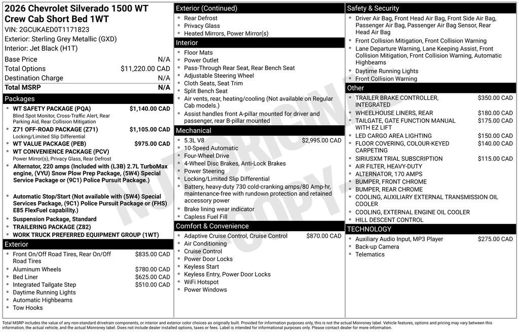 Sterling Gray Metallic 2026 Chevrolet Silverado 1500 WT 4WD 10-Speed Automatic EcoTec3 5.3L V8 10-Speed Automatic, 4WD, Jet Black Vinyl.