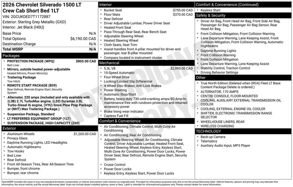 Sterling Gray Metallic 2026 Chevrolet Silverado 1500 LT LT1 4WD 10-Speed Automatic EcoTec3 5.3L V8 10-Speed Automatic, 4WD, Jet Black Cloth.