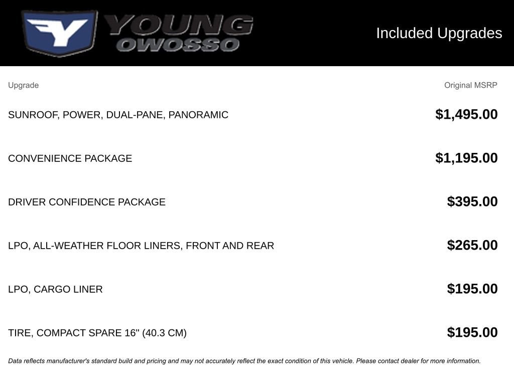 - LT also includes 8-way power driver seat with 2-way power lumbar control, rear center armrest, and power liftgate