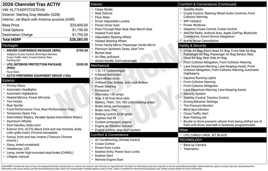 Sterling Gray Metallic 2026 Chevrolet Trax ACTIV FWD 6-Speed Automatic ECOTEC 1.2L Turbo