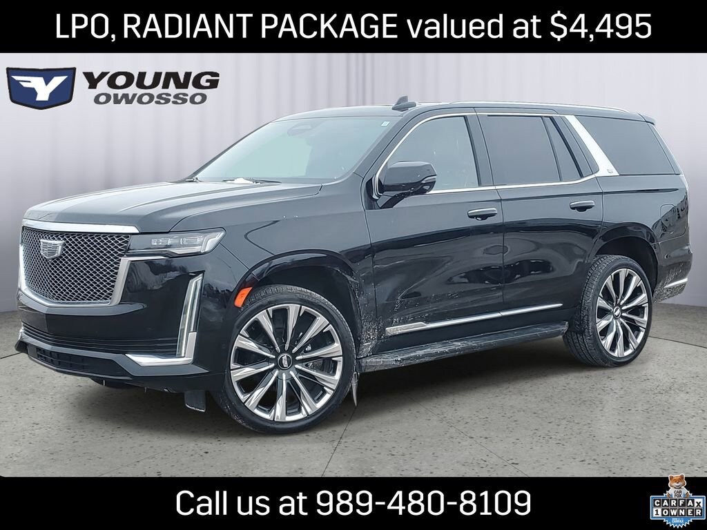 LOCAL TRADE!, CARFAX ONE OWNER!, CLEAN CARFAX!, 3RD-ROW SEATING!, Escalade Premium Luxury, 6.2L V8, AWD, Adaptive Cruise Control, AKG Studio 19-Speaker Audio System, Automatic Seat Belt Tightening, Bright Sport Mesh Grille (LPO), Door Lock & Latch Shields, Enhanced Automatic Emergency Braking, Enhanced Automatic Parking Assist, Glass Breakage Sensor, Heated & Ventilated Driver & Front Passenger Seats, Lane Change Alert w/Side Blind Zone Alert, Mechanical Limited-Slip Differential, Monochrome Cadillac Emblems (LPO), Power Panoramic Tilt-Sliding Sunroof, Preferred Equipment Group 1SB, Puddle Lamps w/Cadillac Crest (LPO), Radiant Package (LPO), Rear Camera Mirror, Rear Camera Mirror Washer, Rear Cross Traffic Alert, Reconfigurable Full-Color Head-Up Display, Reverse Automatic Braking, Running Board Assist Steps, Theft-Deterrent Alarm System, Vehicle Inclination Sensor, Vehicle Interior Movement Sensor, Wheels: 22 12-Spoke Chrome Alloy (LPO), Wheels: 22 Interim (LPO).