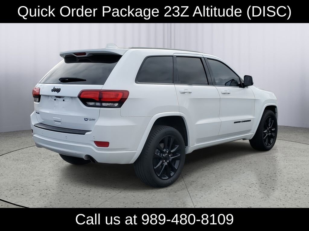 LOCAL TRADE!, Grand Cherokee Altitude, 3.6L V6 24V VVT, 4WD, 1-Year SiriusXM Radio Service, 115V Auxiliary Power Outlet, 6 Month Trial (Registration Required), 8.4 Touchscreen Display, Altitude Grille, Altitude IV Package, Anodized Gun Metal Interior Accents, Auto-Dimming Rear-View Mirror, Black Suede Seats w/Black Stitching (DISC), Body Color Claddings, Body Color Fascia, Body Color Shark Fin Antenna, Dark Day Light Opening Moldings, Dark Headlamp Bezel Finish, Dark Lens Taillamps, Delete Laredo Badge, For Details Visit DriveUconnect.com, For More Info, Call 800-643-2112, Front Accent/Body Color Fascia, Gloss Black Fascia Applique, Instrument Cluster w/Off-Road Disp. Pages, Jeep Black Gloss Badging, Power 4-Way Driver Lumbar Adjust, Power 8-Way Driver/Manual Passenger Seat, Power Liftgate, Quick Order Package 23Z Altitude (DISC), Radio: Uconnect 3C w/8.4 Display, Rear Accent/Body Color Fascia, Rear Fascia Gloss Black Step Pad, Roadside Assistance & 9-1-1 Call, Security & Convenience Group, Security Alarm, Single Exhaust w/Bright Tip, SiriusXM Satellite Radio, Steering Wheel Mounted Audio Controls, Uconnect Access, Universal Garage Door Opener, Wheels: 20 x 8.0 Gloss Black Aluminum (DISC).