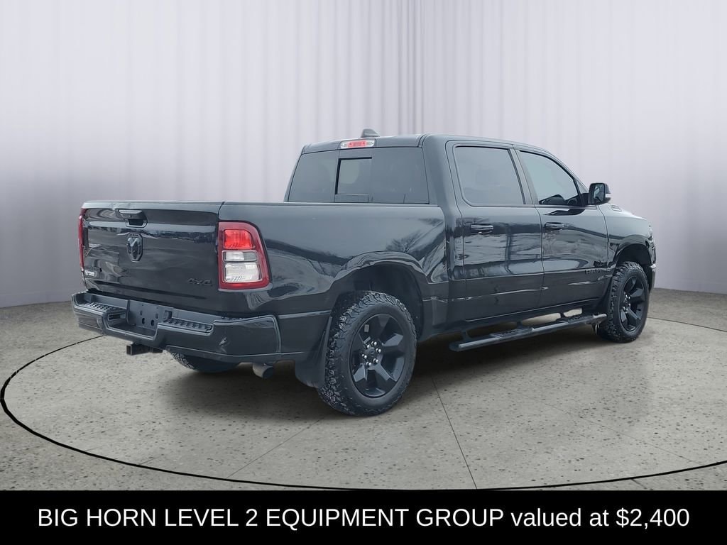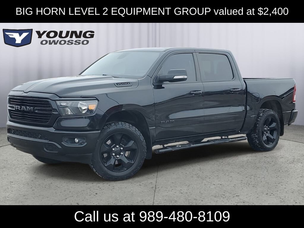 LOCAL TRADE!, CREW CAB!, 4WD, 1500 Big Horn/Lone Star, 3.6L V6 24V VVT, 4WD, 115V Auxiliary Power Outlet, 115V Auxiliary Rear Power Outlet, 2 USB Full Function/Charge Only Media Hub, 3 Rear Seat Head Restraints, 4 Way Front Headrests, 400W Inverter, 8.4 Touchscreen Display, Air Conditioning ATC w/Dual Zone Control, Auto-Dimming Exterior Driver Mirror, Auto-Dimming Rear-View Mirror, Big Horn IP Badge, Big Horn Level 2 Equipment Group, Black Appearance Package, Black Exterior Truck Badging, Black Headlamp Bezels, Black Interior Accents, Body Color Door Handles, Body Color Front Bumper, Body Color Rear Bumper w/Step Pads, Bucket Seats, Center Console Parts Module, Class IV Receiver Hitch, Cluster 7.0 TFT Color Display, Dampened Tailgate, Deluxe Cloth Bucket Seats, Dual Exhaust w/Black Tips, Exterior Mirrors Courtesy Lamps, Exterior Mirrors w/Memory, Exterior Mirrors w/Supplemental Signals, Foam Bottle Insert (Door Trim Panel), Front Seat Back Map Pockets, Full Length Floor Console, Glove Box Lamp, Grille B/Color Outline 1 Texture 2, Heated Front Seats, Heated Steering Wheel, Integrated Center Stack Radio, Manual Adjust 4-Way Front Passenger Seat, ParkSense Front/Rear Park Assist w/Stop, Power 4-Way Driver Lumbar Adjust, Power 8-Way Driver Seat, Power Adjustable Pedals, Power Heated Fold Away Mirrors, Power Heated Fold-Away Mirrors, Power-Folding Mirrors, Quick Order Package 23Z Big Horn/Lone Star, Radio: Uconnect 4 w/8.4 Display, Rear 60/40 Folding Seat, Rear Dome w/On/Off Switch Lamp, Rear Power Sliding Window, Rear Window Defroster, Remote Start System, Security Alarm, Single Disc Remote CD Player, SiriusXM Satellite Radio, Steering Wheel Mounted Audio Controls, Sun Visors w/Illuminated Vanity Mirrors, Universal Garage Door Opener, Wheels: 20 x 9 Cast Aluminum Black.